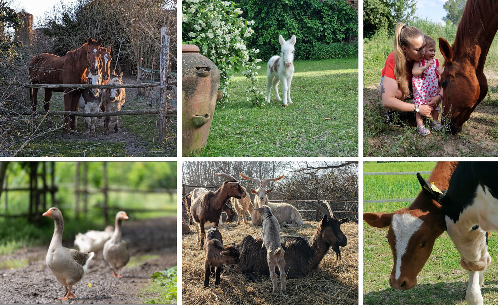 Alla corte, i bambini incontrano oche, galline, mucche e capre, insieme ai nostri cavalli e asini: una grande famiglia che vive in armonia, libera di muoversi e di socializzare in un ambiente che profuma di rispetto e protezione.